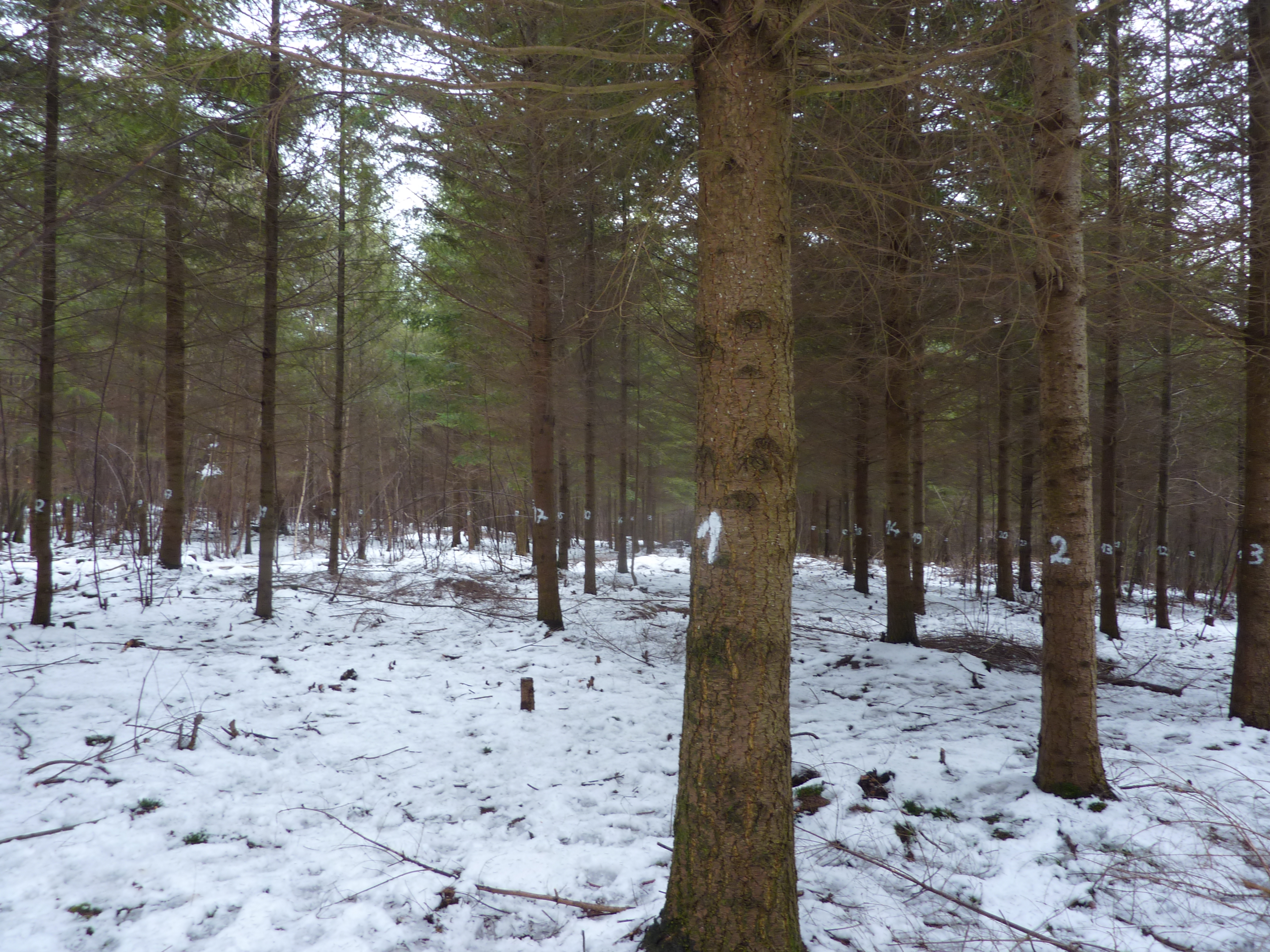 MAIN SYLVICULTURAL OPTION DEMONSTRATED Study of the behavior of Douglas fir to climate change, according to two potentially different soil to climate risks (particularly water stress), within the same forest ownership. STAND AND SITE DESCRIPTION The Douglas-fir stand concerned is 25 years old, and it's localised in a sensibility climatic area for Douglas-fir in France. This demonstration site has 2 experimental plots : *Plot 1 = soil without potential water stress risk *Plot 2 = soil with potential water stress risk.